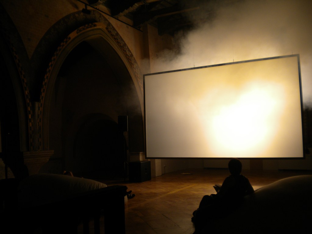 After a movie about 8 persons and cloud topic present in those scenes and reflecting on some classical pieces, the cloud is also present in the rooms as well and coming out from the wall. ?!