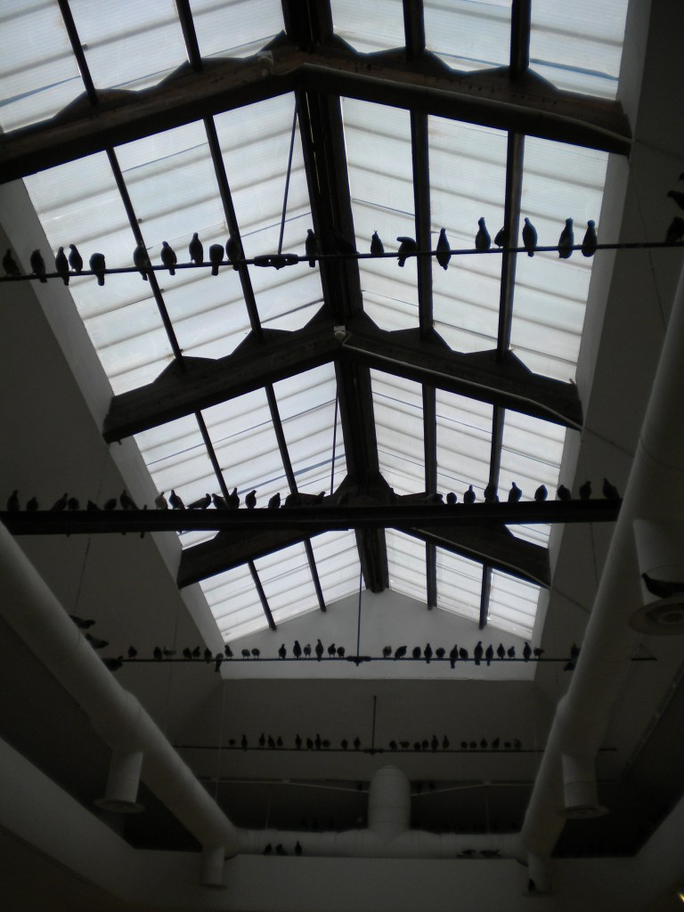 This work was a surprise for organisers, as it was previously created in 1997 with 200 stuffed pigeons and fake pigeon shit on the floor. This year, there are even more pigeons, symbolizing (?) more visitors maybe, which are spread through the halls.