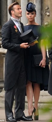 What can I say? I have expected more from her. Nothing is wrong and I would say that the best part is hair and hat. The dress looks to me a bit heavy, shoes are in my opinion too trendy for this occasion and even passé, too tanned + a party makeup and her signature ‘un-smile’ could not be less fitting for a merry wedding celebration. All this just screams, in a very subtle way though, that she does not belong to this noble society and that is is insecure. However, VB remains a true queen of showbiz.