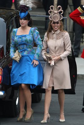 I admire them for being brave after all! :) Beatrice's hat might be funny and in the moment I thought that I see Lady Gaga (‘horns’ + makeup), but the rest is just fine: I love the coat, shoes, colour and all figure. But Eugenie- first I thought: what on earth was she thinking? But now I think more: what on earth was Vivienne Westwood thinking? This 'posh' yet very messy version of an English dirndl is just not right.