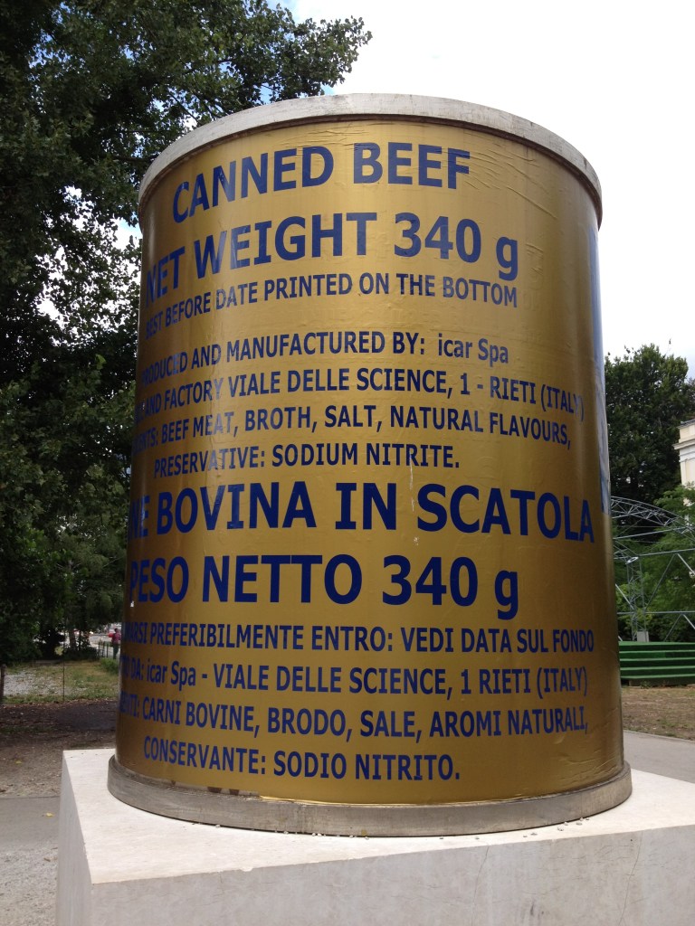 ... and now a 'classic': International Community monument, a over-dimensional canned beef by Nebojsa Seric Shoba, that fed the people of Sarajevo during the war-time. In the meantime, the 'can' became one of the favorite landmarks of locals. According to artist, this was a can with "never-confirmed content, expiration date, country of origin, (...) did not have anything better".